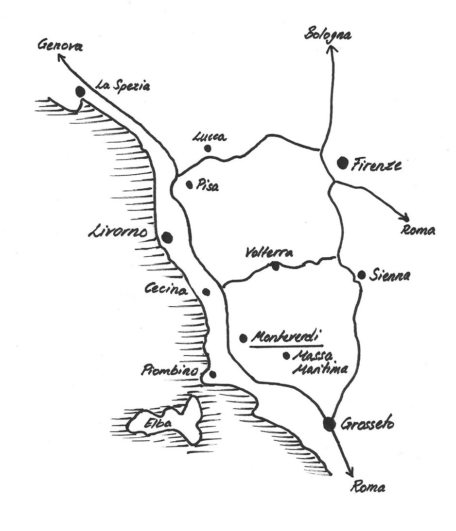 bis Campiglia Marittima bei Venturina (17 km von Monteverdi entfernt)